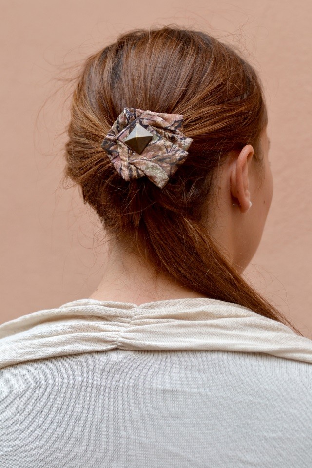 Toutes ses pièces sont réalisées à la main, pliées, cousues et ornementées différemment selon les matières et les motifs. Shukay chine et donne une seconde vie à chaque trouvaille pour réaliser des accessoires que vous ne verrez pas deux fois !