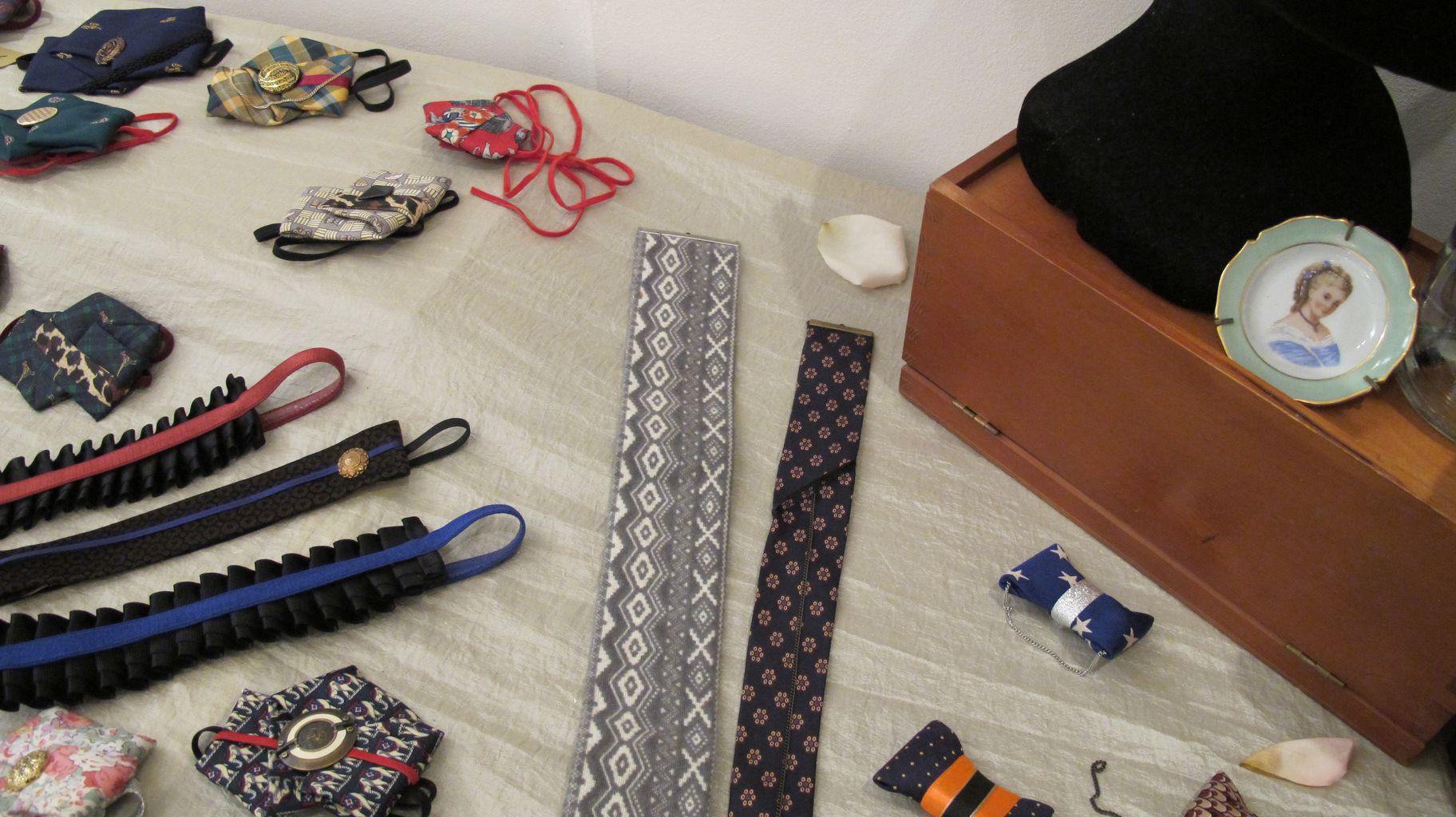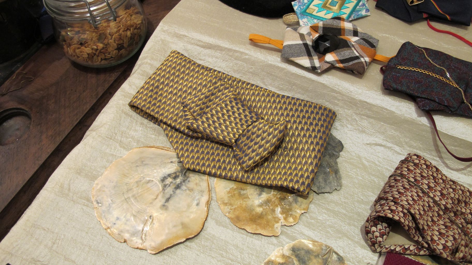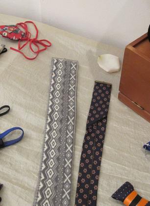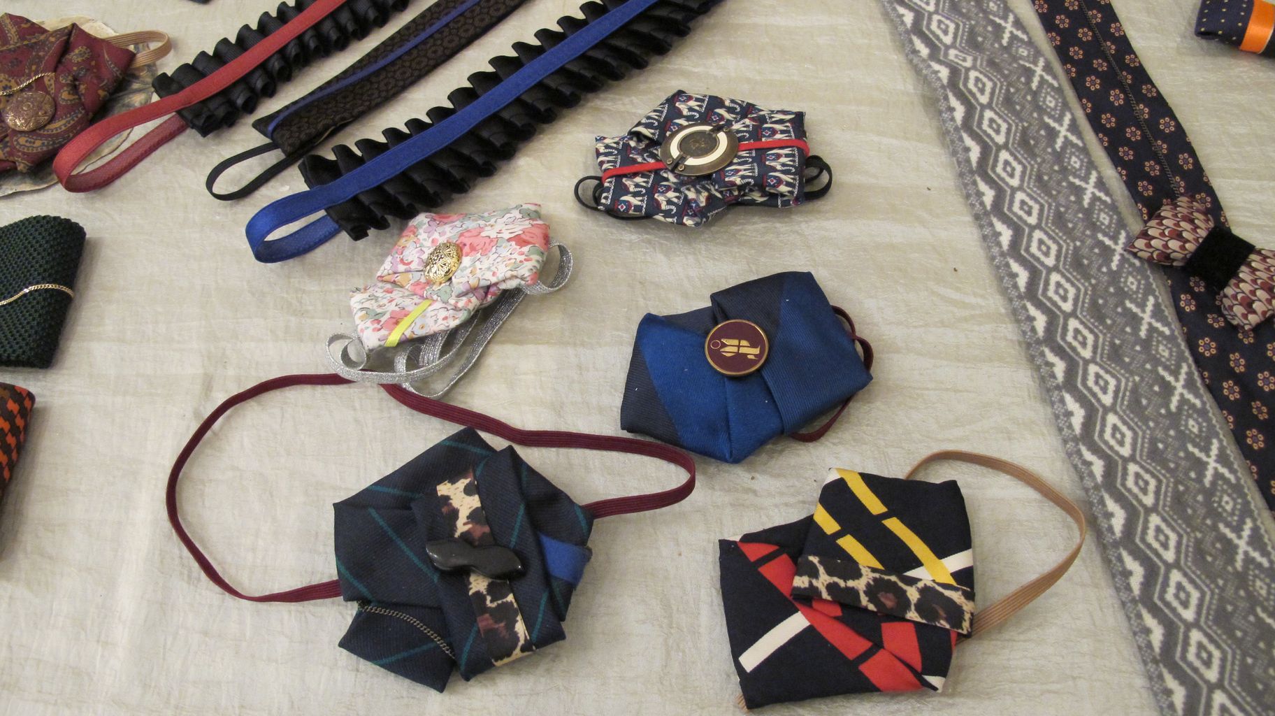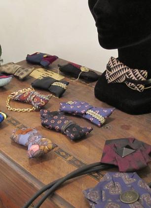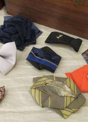 Elle expérimente le pliage textile de manière experte et s’appuie sur une typologie de motifs qu’elle va dénicher par pur plaisir dans la garde robe masculine.
